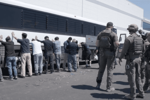 Detained workers by ICE agents at Georgia Hyundai-LG plant. (Photo: Corey Bullard, U.S. Immigration and Customs Enforcement, Wikimedia ...
